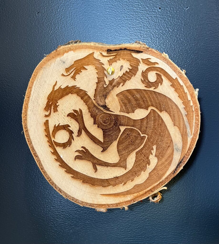 Tree Slices – We can apply other types of graphics to the tree slices, giving endless possibilities for expressing your creative side. From fantasy graphics to family trees, we can laser engrave your graphic ideas onto wood.