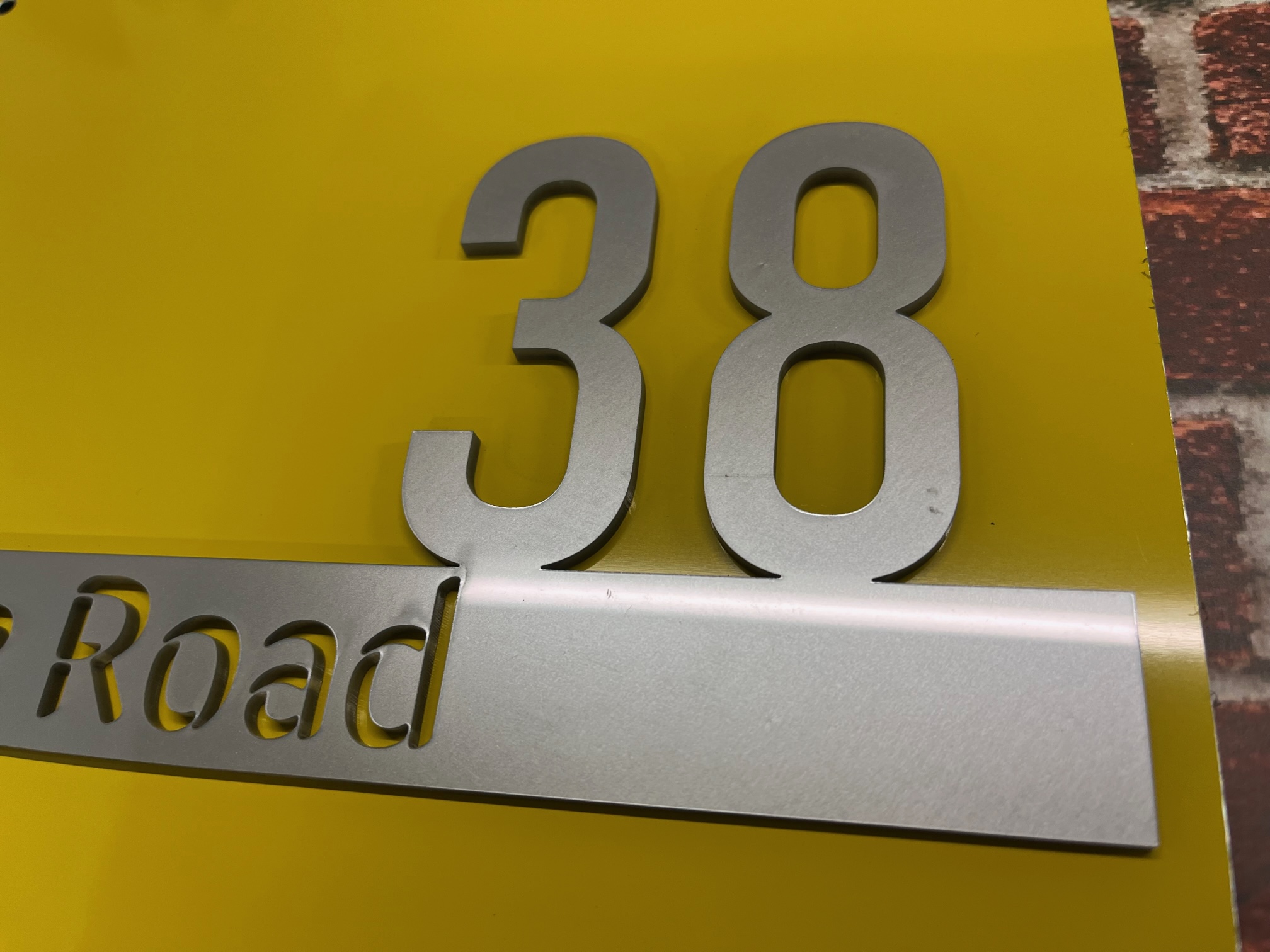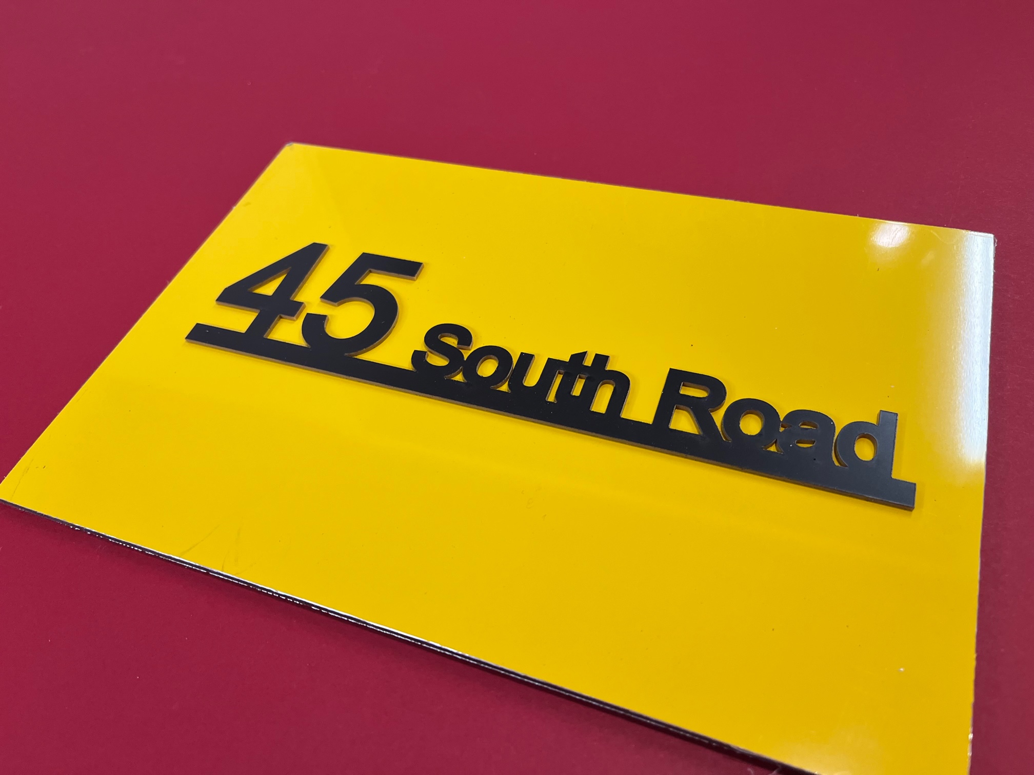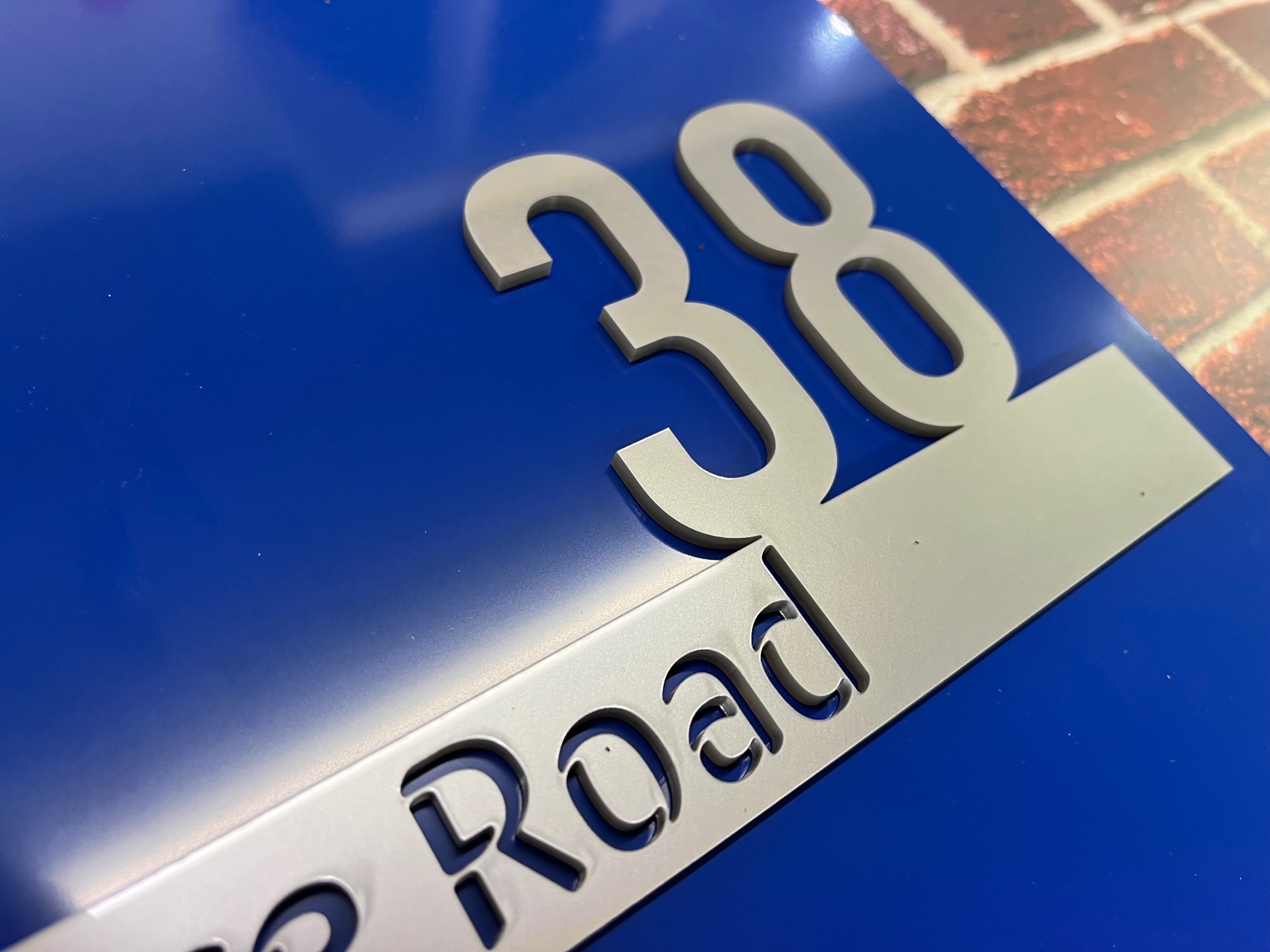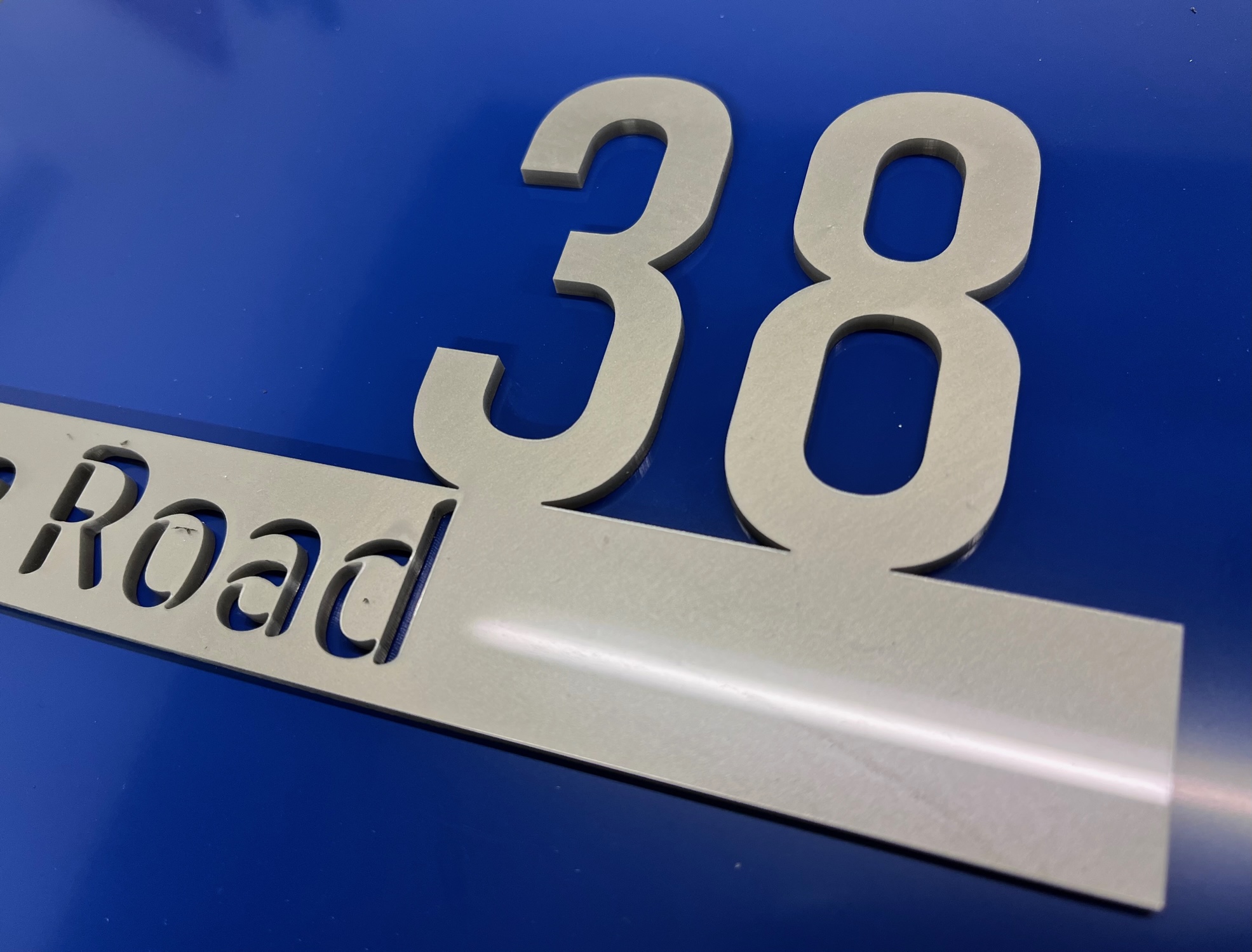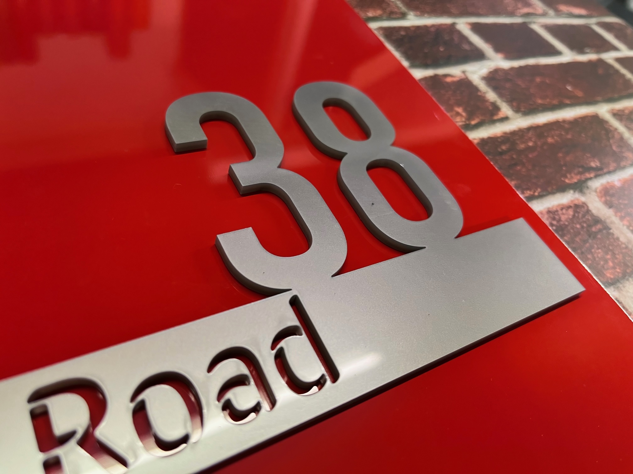 The Cromie range of house signs features a combination of raised and laser-cut acrylic lettering on a coloured backplate with your house number street address. Produced with modern acrylic lettering, laser cut, and bonded onto a coloured back plate.