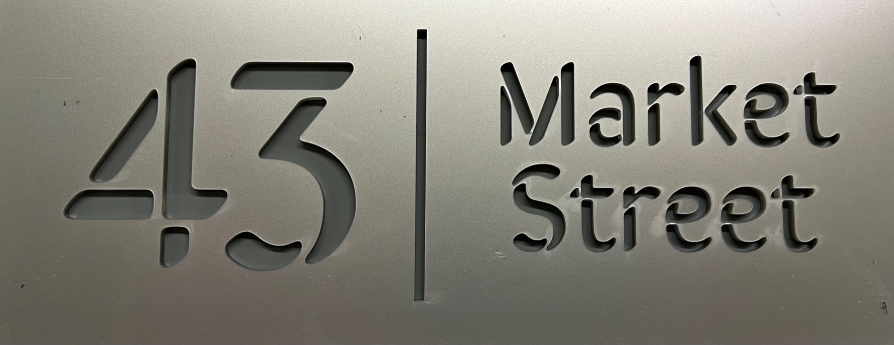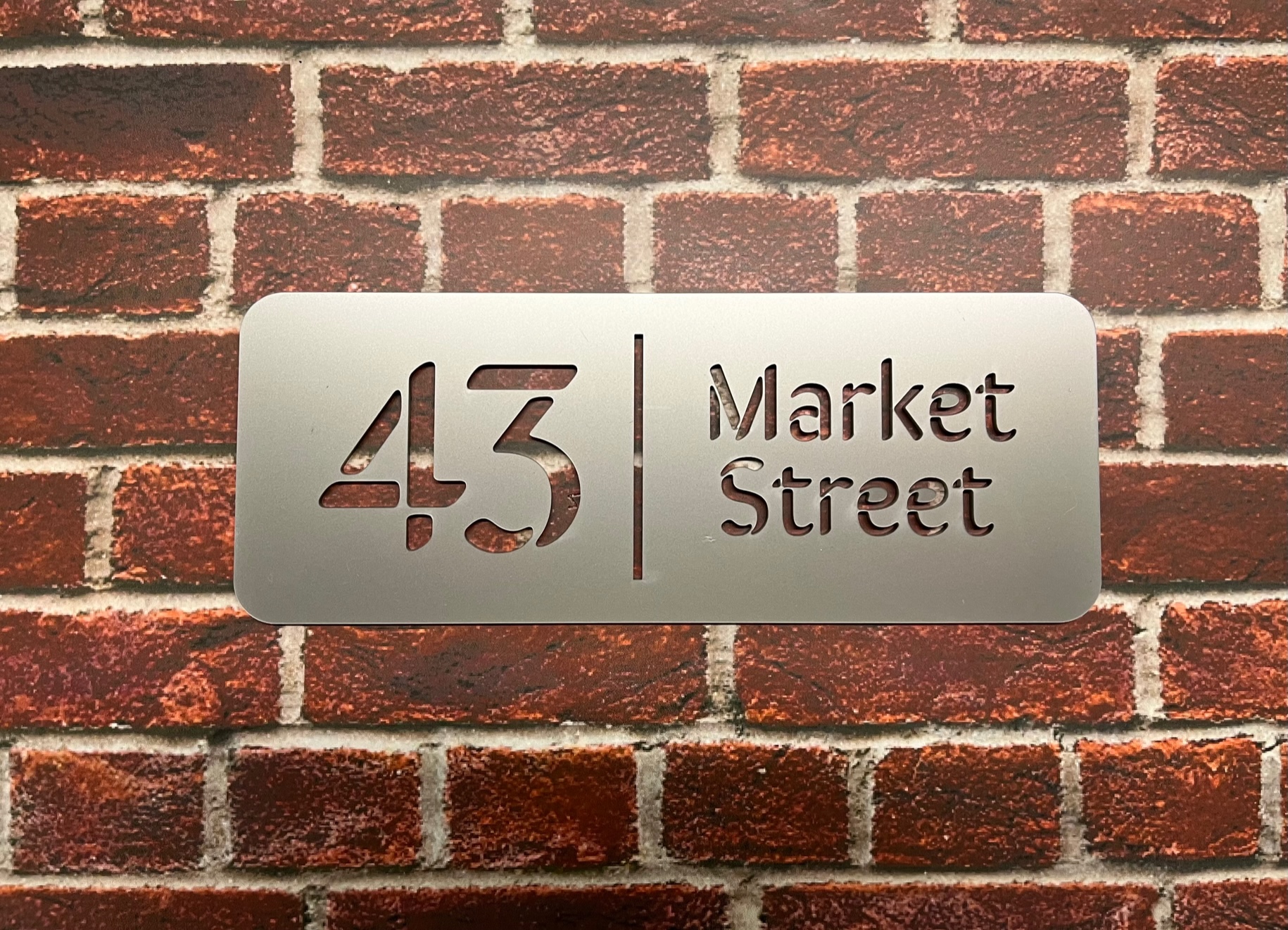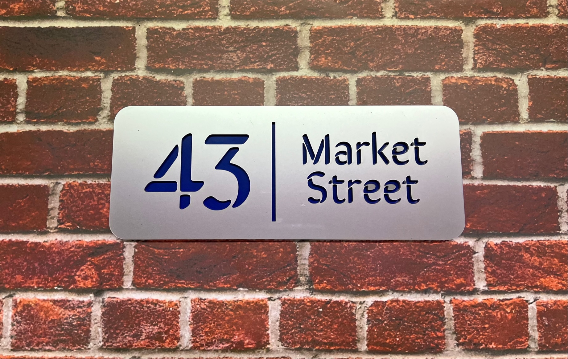 Our Melgam range is a modern and stylish product with a clean typeface, laser engraved through an acrylic surface to show a coloured back plate, or as an alternative, show through to the building surface.