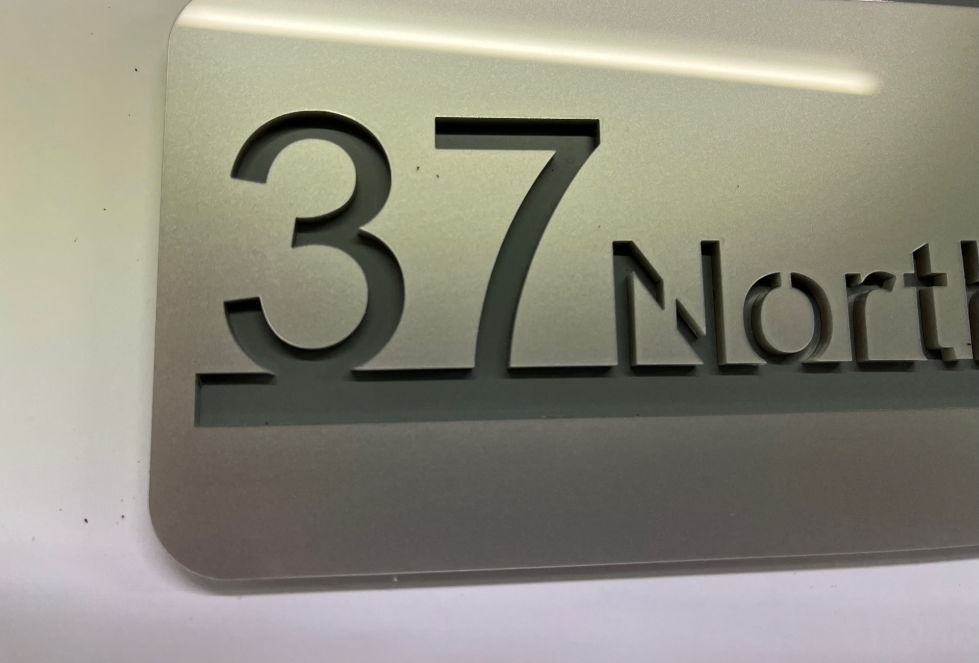 Our Camno range is a modern and stylish product with a clean typeface, laser engraved through an acrylic surface to show a coloured back plate, or as an alternative, show through to the building surface.
