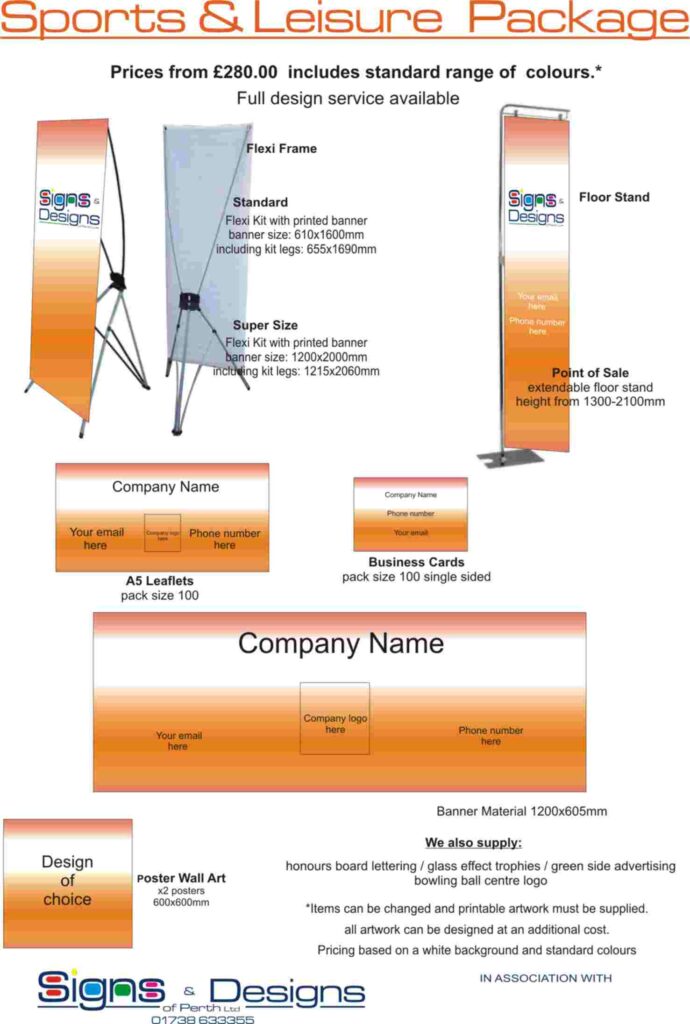Packs come with a 1200 x 600mm Banner with your team/club/organisation/business name, web address/phone number and company logo applied on heavy-duty vinyl.